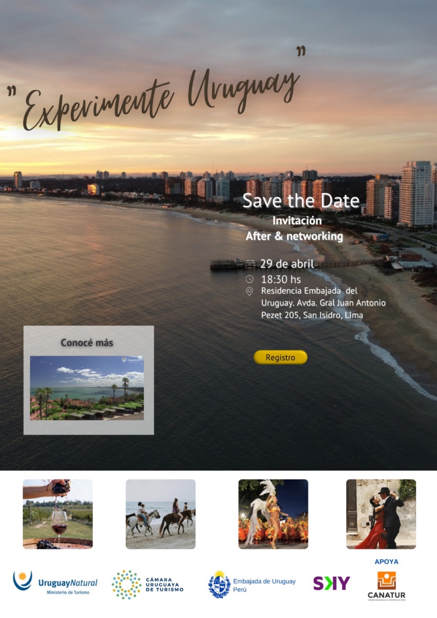 El lunes 29 de abril, la Cámara Uruguaya de Turismo, con el apoyo del Ministerio de Turismo, convoca al segundo Experimente Uruguay de 2024, en esta ocasión, en Lima, Perú.