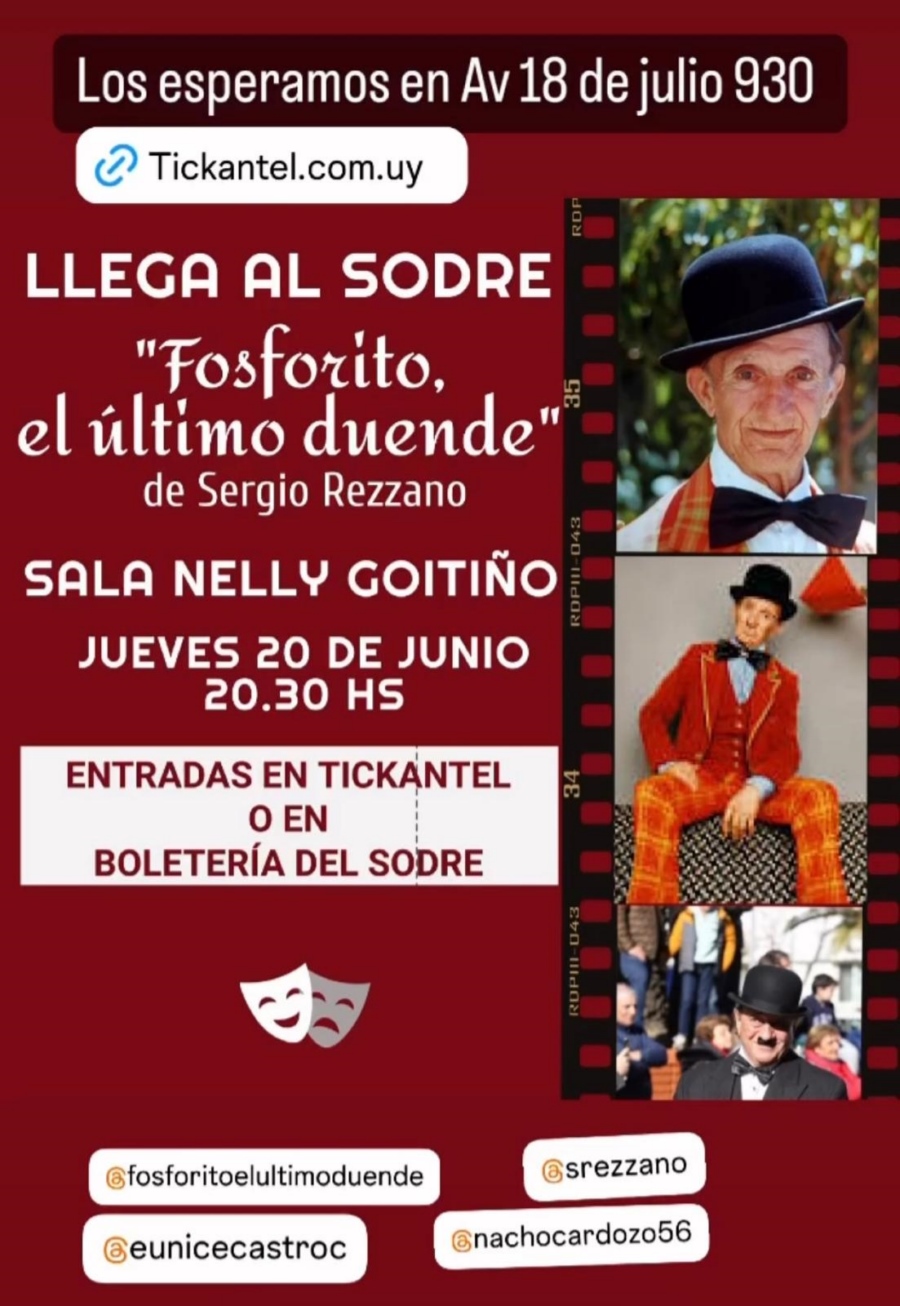 Entradas a través de tickantel: https://tickantel.com.uy/inicio/espectaculo/40016651/espectaculo/Fosforito?3