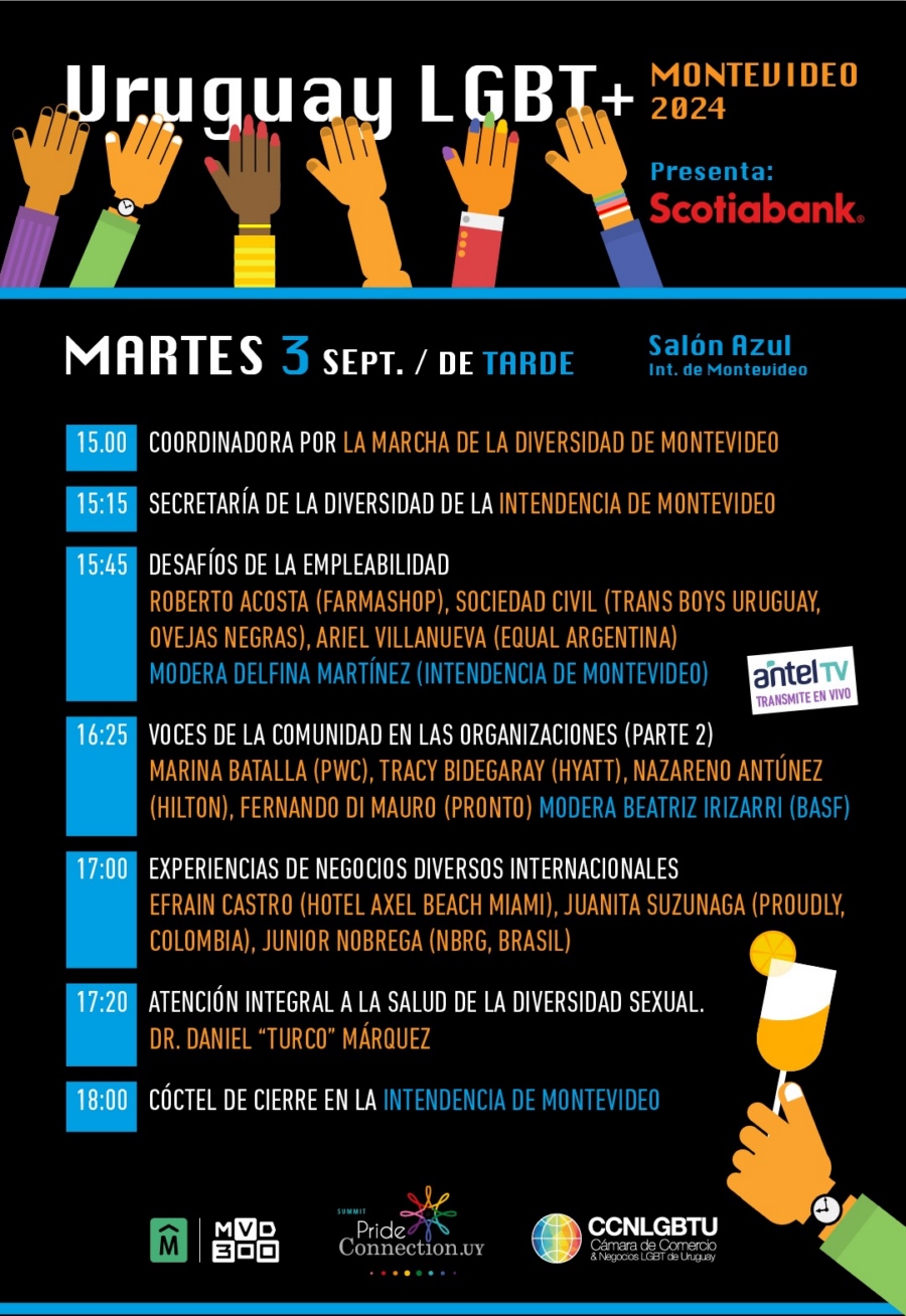 “Uruguay LGBT + Summit Pride Connection - Montevideo 2023” se va a desarrollar el 2 y 3 de setiembre de 2024, organizado por la Cámara de Comercio y Negocios LGBT de Uruguay.