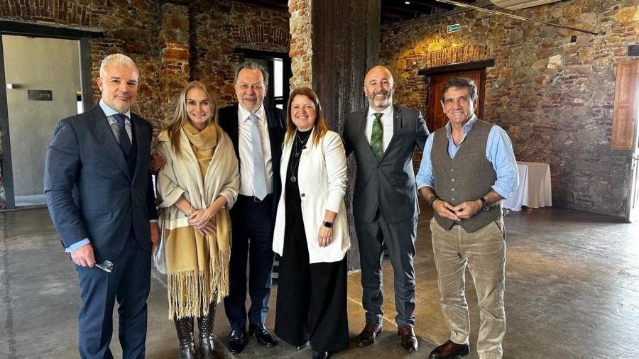 La foto demuestra la alegría del momento, por parte de los directivos del sector turismo presentes, entre ellos, el ministro de Turismo, Dr. Eduardo Sanguinetti; la presidente de Fedesul y Camtur, Prof. Marina Cantera; el director General de Secretaría del MINTUR, Dr. Ignacio Curbelo; vicepresidente de la Cámara y presidente de AHRU, Francisco Rodríguez Cabo; y el contador y Past Pte de CAMTUR, Juan Martínez Escrich.