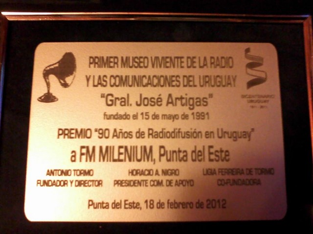 El sábado 18 de febrero 2012 en el Espacio Cultural ANCAP de Gorlero, el Museo  Viviente de la Radio y las Comunicaciones en Uruguay entregó a FM 88.7 MILENIUM  el premio " 90 Años de Radiodifusión en Uruguay ".