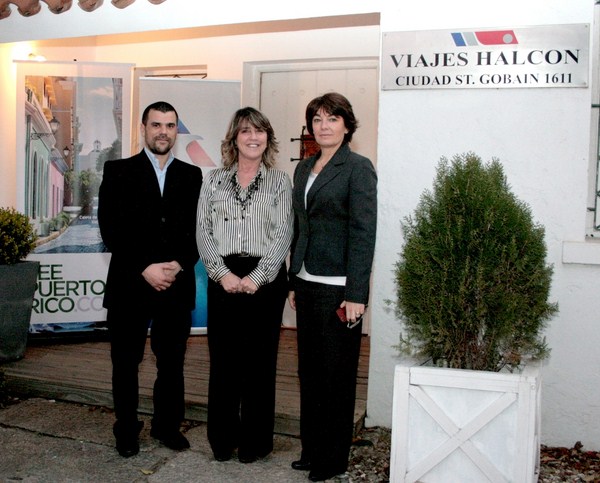 Christian Cejas, representante de la Oficina de Turismo de Puerto Rico; Inés García, Directora de Viajes Halcón, y Adriana Hofmann, de American Airlines