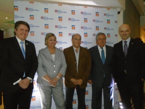 Agustín Maddocks, Gerente General del Hilton Garden Inn; Ministra de Turismo, Liliam Kechichian; Cr. Carlos Lecueder, del Estudio Luis E. Lecueder y el Vicepresidente de Operaciones para Sud América de Hilton Worldwide, José Juan González