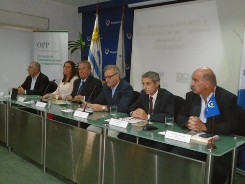 Alcalde del Municipio de Rosario, Daniel Dibot; Alcaldesa de Nueva Helvecia, María de Lima; Intendente de Colonia, Carlos Moreira; Director Nacional de Turismo, Lic. Carlos Fagetti; Subdirector de OPP, Martín Dibarboure y Director de Descentralización e Inversión Pública de OPP, Pedro Apezteguía