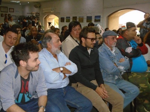 Primera fila con artistas: Agustín Casanova, de Márama; Eduardo Labarnois; Emiliano Brancciari, de NTVG; Mario Carrero y El Gucci