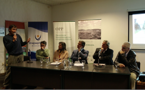 Mario Invernizzi, Alcalde de Piriápolis; Federico Casella, Presidente de APROTUR; la Intendenta de Lavalleja, Dra. Adriana Peña; Cr. Álvaro García, Director de la OPP; Intendente de Maldonado, Ing. Agr. Enrique Antía y Ministro (i) de Turismo, Benjamín Liberoff