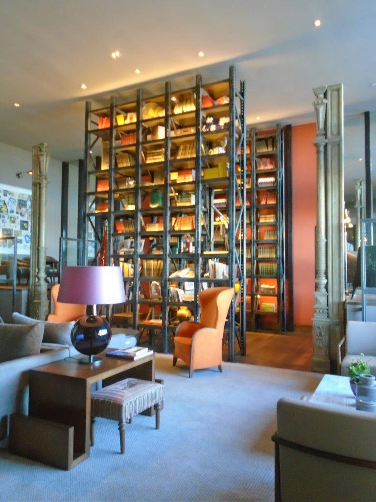 Uno de los espacios más acogedores del hotel es el “Corner”, un living de distintos niveles, donde destaca una biblioteca con libros de autores uruguayos.