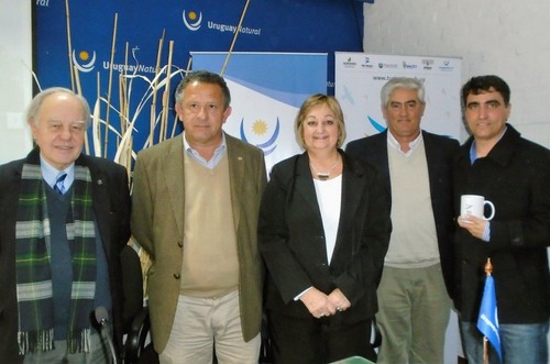 Augusto Victorica de la CAMTUR; intendente de Artigas, Pablo Caram; Ministra Liliam Kechichian; intendentes de Soriano, Agustín Bascou y de Salto, Andrés Lima
