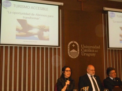La bienvenida al seminario fue brindada por el Mag. Gabriel Andrade, director de la Carrera de Dirección en Empresas Turística de la UCU, quien expresó que el encuentro iba a “contribuir para más y mejor turismo para todos en Uruguay”. A continuación, se proyectó un saludo del Director General de la OMT, Taleb Rifai quien se refirió a los 1.2 billones de turistas en el mundo y a que el 15% de las personas tienen algún impedimento físico. “La accesibilidad debe ser centro de políticas de Turismo, no sólo como derecho humano, sino también como negocio”.
