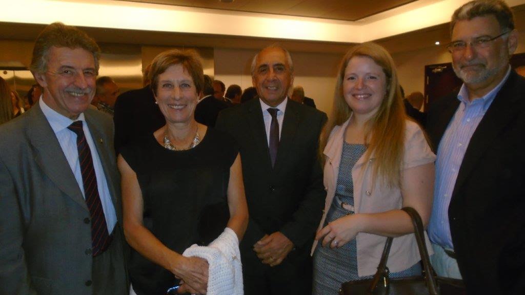 Miembros de Honor de la CAMTUR: Walter Sobrero, Martha Pissano y Augusto Victorica, junto a la Ministra de Turismo Liliam Kechichian y al Presidente Cr. Juan Martínez Escrich