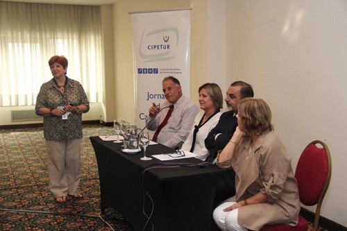 Elizabeth Villalba, Directora de Turismo de Montevideo felicitó al CIPETUR por la organización de la conferencia, está acompañada por Adriana Careaga, Presidente de Montevideo Bureau y Jorge Morandeira, asesor del Ministerio de Turismo
