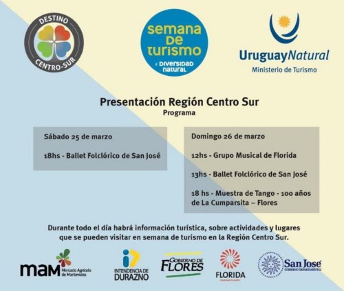 Al pie de la nota, en archivo adjunto, programación completa y atractivos turísticos de la Región Centro-Sur: Durazno, Flores, Florida y San José.