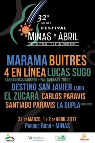 Este año, la 32ª edición del Festival Minas y Abril, la tradicional fiesta de Lavalleja, se desarrollará del viernes 31de marzo al domingo 2 de abril en el Parque Rodó de la ciudad de Minas.