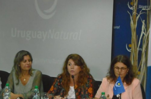 de izquierda a derecha: Manuel Rodríguez, Coordinador de Eventos de la Intendencia; Daniel Fernández, Director de Turismo de Lavalleja; Dra. Carmen Estela, Directora del Hospital Alfredo Vidal y Fuentes; Ministra de Turismo, Liliam Kechichian; Intendente de Lavalleja, Dra. Adriana Peña; Analía Grandi, y la vicepresidente de la Comisión Organizadora; Dra. Ariana Bentos, Directora de la RAP y Presidenta de la organización