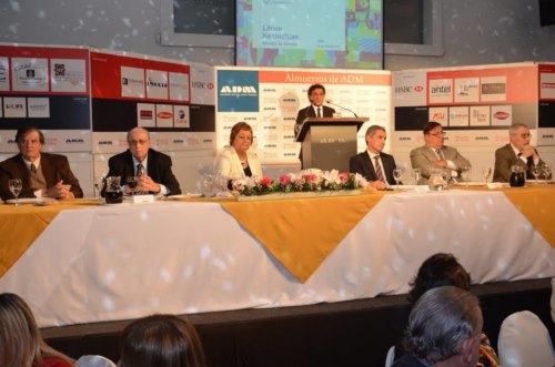 Mesa oficial: Jorge Abuchalja, Presidente de ADM introduce a la Ministra Liliam Kechichian, acompañado por directivos de ADM; Hugo Perelli, Vicepresidente de la CAMTUR y el Subsecretario de Turismo Benjamín Liberoff