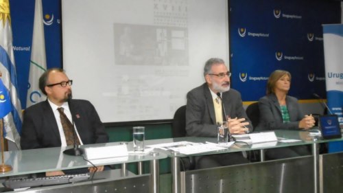 En el lanzamiento en el MINTUR: Luis Dulout, Presidente de la Red Iberoamericana de Valoración y Gestión de Cementerios Patrimoniales; Arq. Eduardo Montemuño, Coordinador Nacional de la Red Uruguaya de Cementerios y Sitios Patrimoniales y la encargada de Diseño de la Oferta Turística del Ministerio, Esc. Doris Rodríguez