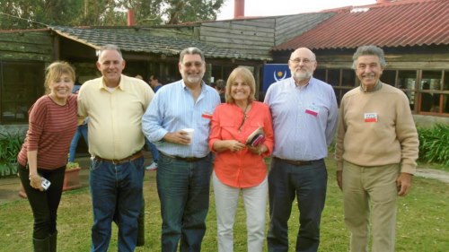 Patricia Ruiz, experta argentina; Roque Baudean, Presidente del CIPETUR; Alberto Latarowski, de Montevideo Bureau y AHRU; la dueña de casa Mirtha Bonilla; Cr. Juan Martínez Escrich, Presidente de la CAMTUR y Gabriel Andrade, directivo de la CAMTUR