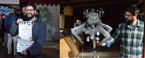 Finalmente, Telmo Buschiazzo recibió un especial homenaje por sus dos participaciones en Drap Art Uruguay, presentando un impresionante trabajo realizado con piezas de relojería.