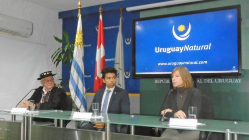 Nelson Barreto, de la Comisión Pro Colonia Suiza; André Rutti, representante de la Embajada Suiza en Uruguay, y Esc. Doris Rodríguez, encargada de Diseño de la Oferta del MINTUR