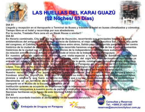 El circuito turístico denominado “Las Huellas del Karai Guazú” busca llamar la atención de los viajeros uruguayos con destino a Paraguay expresó  Manuel Valenzuela, de la empresa Asunción City Tour, operadora de la nueva propuesta turística junto a las firmas Terratrans y Terranova.
