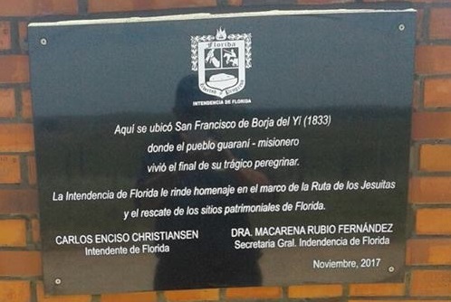 Lugar, recientemente recordado en noviembre de 2017, con una Placa Homenaje por el Pueblo y el Gobierno Departamental de Florida, a iniciativa del Departamento de Turismo por el Programa de Turismo Comunitario para la “Ruta de los Jesuitas, Guaraníes y las Estancias”, que expresa así: “Aquí se ubicó San Francisco de Borja del Yí (1833), donde el pueblo guaraní – misionero vivió el final de su trágico peregrinar. La Intendencia de Florida le rinde homenaje en el marco de la Ruta de los Jesuitas y el rescate de los sitios patrimoniales de Florida”. (Expediente 02571 de 2016 de IDF y Junta Departamental de Florida).