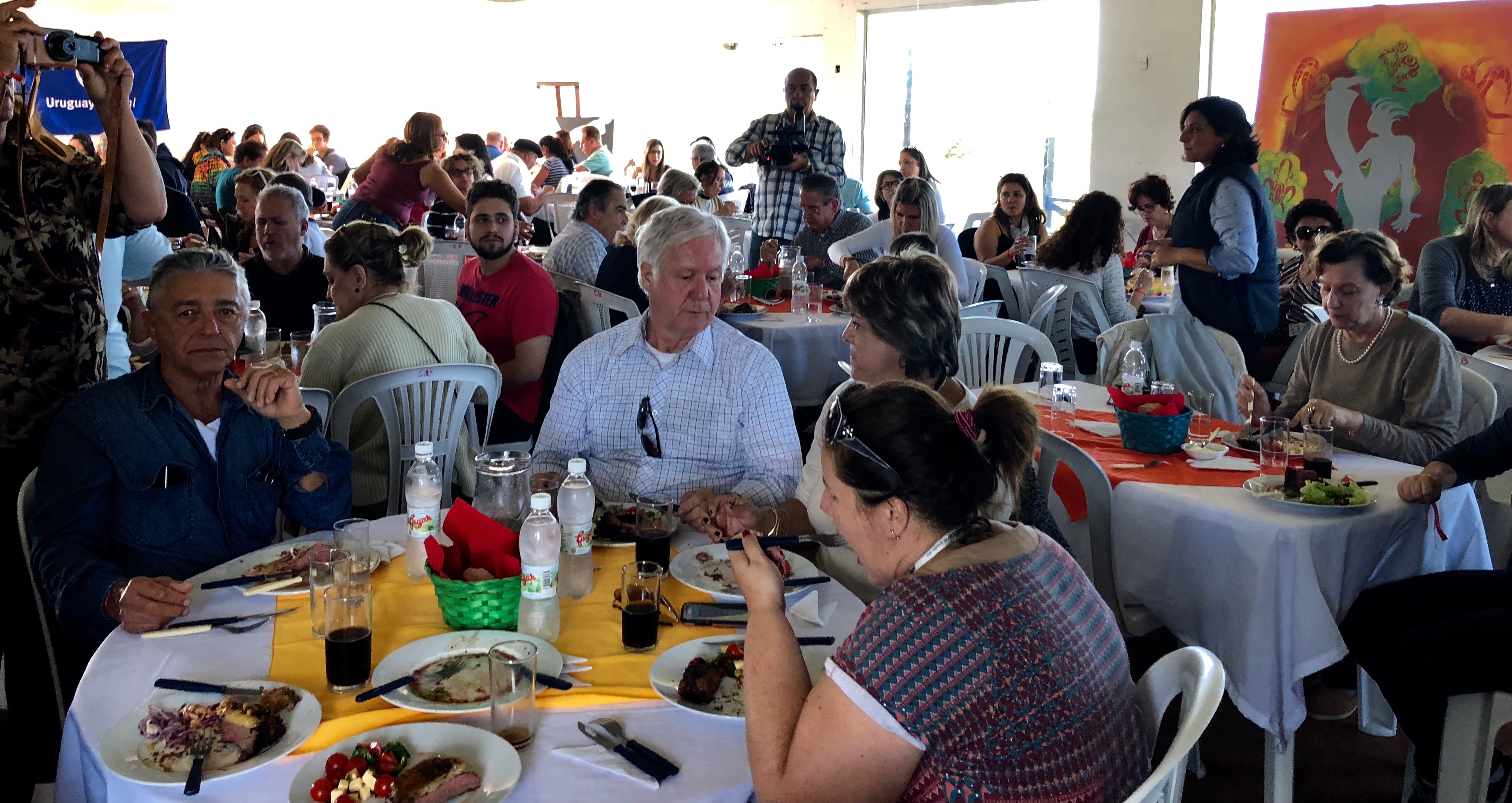 El intendente de Rocha Aníbal Pereiya recibió a los periodistas con un exquisito asado, acompañado del premiado vino tannat uruguayo.
