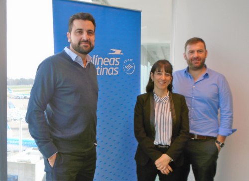 Foto portada: Javier Botta, de Abtour Viajes; Gisela Marino, jefe Ventas Sudamérica de Aerolíneas Argentinas; Gastón de Chazal, gerente regional de AR para Uruguay y Paraguay; Roberto Gelpi, encargado de ventas de AR en Uruguay; Carolina Varela, de Planet Travel; Diego Martínez, de Jorge Martínez; Andrés Gil, de Jetmar / Grupo 5M.