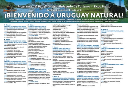 El miércoles 5 por la tarde, el Ministerio de Turismo inauguró su pabellón con la presencia de la ministra de Turismo Liliam Kechichian; el subsecretario Benjamín Liberoff; la directora general Hyara Rodríguez;el intendente (i) de Colonia, Napoleón Gardiol;el director ejecutivo de Uruguay XXI Antonio Carámbula;los directores de Turismo de Colonia, Andrés Sobrero; de Paysandú, Alejandro Leites y el sub director de Río Negro, Miguel García quienes representaron a sus colegas de Artigas, Salto y Soriano.
