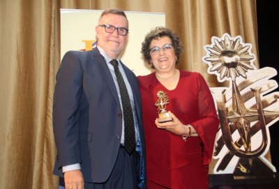 El presidente de AUDAVI, Dr. Carlos Pera le entregó el Sol a Laura Yañez, directora general de Personal Operadora, quien hace más de veinte años que se dedica en forma profesional al Turismo Receptivo; al comienzo en el área comercial. A lo largo de su carrera ha participado en ferias, eventos y congresos vinculados a la actividad turística a nivel nacional, regional e internacional, siempre con una activa participación activa en los mismos, apoyado el desarrollo de la actividad turística a nivel colectivo. Su vínculo con Personal Turismo de Porto Alegre la ha llevado a tener una fuerte presencia en el mercado “gaúcho”y a destacarse en eventos como el Festival de Gramado, donde ha dictado conferencias para promocionar a Uruguay por más de 20 años consecutivos. Fue miembro del primer Conglomerado de Turismo de Montevideo, aportando estrategias para el crecimiento del sector. Es miembro activo del Skäl desde hace varios años. Recientemente, a través de la Asociación Uruguaya de Agencias de Viaje, integra una alianza que reúne a los principales empresarios del Turismo Receptivo de nuestro país, en busca de mejoras para el sector. Laura expresó su “agradecimiento y compromiso de trabajo con AUDAVI en esa comisión de Turismo Receptivo”.