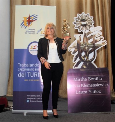 foto de portada: Los 3 premios Sol: Laura Yañez, Sylvia Klemensiewicz y Mirtha Bonilla, con la ministra de Turismo Liliam Kechichian, Juan Martínez Escrich, presidente de la CAMTUR y Marina Cantera, secretaria de la CAMTUR.