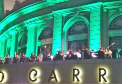 Desde la gran terraza del Hotel, la Orquesta Juvenil del Sodre, dirigida por el maestro Ariel Britos, interpretó las primeras estrofas de Carmen de Bizet, para continuar con varios clásicos, hasta ponerle ritmo a la nochecita con distintos estilos musicales. Candombe, tango, temas de los Beatles y un gran cierre con el tema “Candombe para Gardel”, de RubénRada.