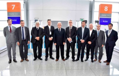 Galería de imágenes: 1.- Diego Arrosa, CEO de Corporación América Uruguay. 2.- Ministro del Interior, Eduardo Bonomi y el intendente de Canelones, Yamandú Orsi. 3.- Diego Arrosa y Martín Eurnekian, de Corporación América, con el Ministro de Telecomunicaciones y de la Sociedad de la Información de Ecuador, Ing. Guillermo Santacruz. 4.- Ing. Ricardo Cerri, Jefe de Tecnología del Aeropuerto de Carrasco y Javier Macías, gerente general de LATAM en Uruguay. 5.- Juan Lescarboura, gerente del Aeropuerto de Laguna del Sauce y Javier Botta, director de Abtour. 6.- Cristina Sueyras, de Avianca; Laura Salvo, de American Airlines; Susy Torres, de Corporación América y Adriana Forlán, deAir Europa. 7.- Miguel Saravia, de SITA; intendente de Canelones Yamandú Orsi; ministro del Interior, Eduardo Bonomi; Martín Eurnekian, presidente de Corporación América Airports; ministro de Defensa Nacional, Jorge Menéndez; Jorge Vázquez, subsecretario del Ministerio del Interior; Diego Arrosa, CEO Corporación América Uruguay: Miguel Leitman, de Vision Box; Javier Macías, gerente general de LATAM Uruguay; Ricardo Cerri (Gerente de IT de Corporación América Uruguay.