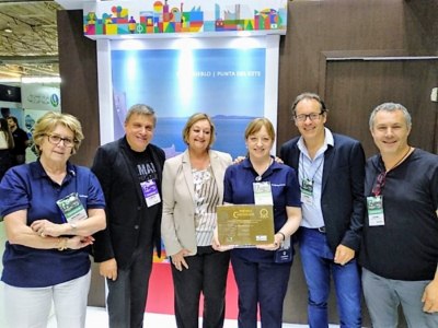 La entrega se realizó en el espacio uruguayo, por parte de la editora jefe del Grupo, Márcia Santos y el director comercial, Paulo Ricardo Miranda, junto a los CEOs de FESTURIS Marta Rossi y Eduardo Zorzanello. Recibieron el mismo Mariella Volppe -encargada del departamento de Difusión del Ministerio de Turismo y responsable del mercado de Brasil-, la titular de la cartera, Liliam Kechichian, quien afirmó que “el mismo se debe al trabajo en equipo”, y los arquitectos responsables del diseño.