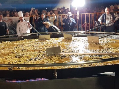 El espectáculo central no sólo consiste en degustarla, sino también en ser testigo de la preparación del representativo plato en una paellera de seis metros de diámetro y con 10 chefs actuando al unísono.