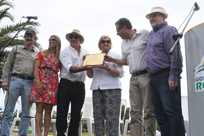 El intendente de Rocha Anibal Pereyra y la directora de Turismo Ana Caram entregaron un reconocimiento a la Corporación Rochense de Turismo por sus 25 años de trabajo ininterrumpido. En la ceremonia, fueron acompañados por las autoridades presentes.