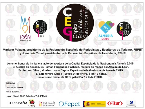 Así se dará comienzo a los eventos del año 2019 con una agenda repleta de acontecimientos gastronómicos que" han de suponer la rampa de  lanzamiento de Almería como destino turístico y gastronómico" en  palabras de Mariano Palacín, Presidente de CEG.
