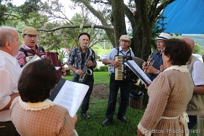 A continuación, uno de los momentos más esperados por los visitantes: la cosecha y la pisa de uva fueron conducidas por las soberanas de la Fenachamp 2019, reina Aline Bortolini y las princesas Rafaela Cappelari y Tainara Correa. La animación quedó por cuenta de los grupos Jaz Flor de Uva y Zo Garrafon, que ejecutaron canciones típicas italianas, mientras garibaldenses y turistas vivían la experiencia de una auténtica vendimia. Un merendón, con panes, salames, copas, quesos, grostoli, sfregolá, bruscas, polenta sapecada y bebidas como jugos de uva, vinos y espumantes, cerró la confraternización.
