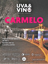 Carmelo ha sido la ciudad seleccionada para el primer evento de este año. El viernes 15 de febrero, desde las 20.00 horas, se va a desarrollar en un lugar de excepción: el parque de la rambla carmelitana, sobre la margen del Arroyo de las Vacas, a pocos metros del emblemático puente giratorio. En caso de lluvia, se realizará en los salones del Hotel Casino Carmelo, en Playa Seré. Esta edición es auspiciada por el Ministerio de Turismo, la Intendencia de Colonia, el Municipio de Carmelo y el Corredor Pájaros Pintados.
