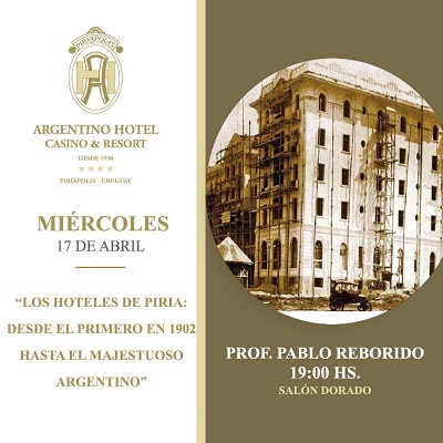 Miércoles 17 de abril - Hora 19 - Los Hoteles de Piria desde 1902 hasta el majestuoso Argentino - Prof. Pablo