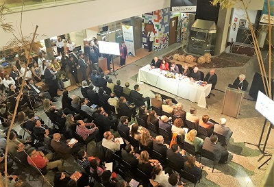 Galería de imágenes: 1.- Público en el hall del MINTUR. 2.- Vista desde el primer piso de la sede del Ministerio. 3.- Tapa del Plan 2030.