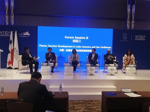 El tema de la conferencia fue “El mercado emisor chino y el desarrollo del turismo en América Latina y el Caribe”, donde se mostraron los recursos turísticos de Latinoamérica y se promovió en gran medida el desarrollo coordinado del turismo latinoamericano y mundial, fundamentalmente apuntando al mercado chino -principal mercado en la actualidad en cuanto a número de turistas que viajan al exterior-.