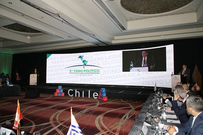 Galería de imágenes: 1.- Colombia será sede de FIEXPO por 3 años: Arnaldo Nardone y Sergio Baritussio con autoridades colombianas. 2.- Foro político 2018 en Santiago. 3.- Corte de cinta FIEXPO 2018. 4.- Stand de Chile en FIEXPO
