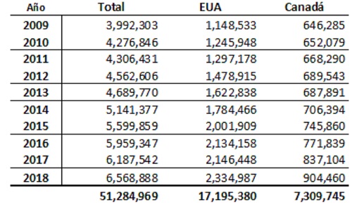 10. En los años 2009-2018 llegaron por vía aérea 51.2 millones de turistas de los cuales 17.1 millones vinieron desde los Estados Unidos y 7.3 desde Canadá. No existen antecedentes como las tres muertes. Son hechos aislados circunstanciales no recurrentes. Ninguna de estas muertes está vinculada a delincuencia.