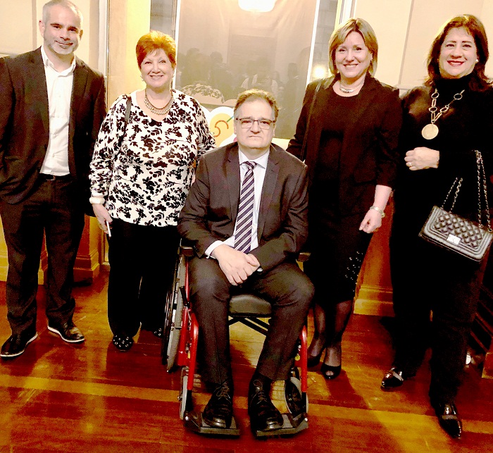 Coctel lanzamiento de la III Cumbre - Teatro Solís (de Izq) Dtor. Desarrollo Económico, Óscar Curuchet, María Shaw CIPETUR, Pte. Red Iberoamericana de Accesibilidad, Javier González; directora Turismo Elizabeth Villalba, Ma. Elisa Fernández directiva CIPETUR.