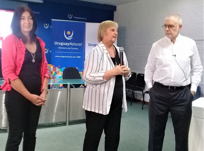 foto de portada: La ministra de Turismo Liliam Kechichian saluda a la prensa, junto al subsecretario Benjamín Liberoff y la directora general de secretaría Hyara Rodríguez