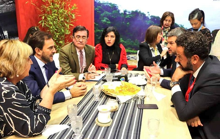 También el jueves 23, el novel Ministro de Turismo y Deportes de Argentina, Matías Lammens visitó el stand de Uruguay y mantuvo una reunión de trabajo con la ministra Kechichian, el subsecretario Liberoff y los futuros jerarcas Cardoso y Monzeglio. Se analizaron 3 temas: el impuesto del 30% al dólar turista, al que el argentino manifestó “está en nuestra prioridad levantarla apenas tengamos los primeros índices de estabilidad y crecimiento”. Con respecto a la coordinación de estrategias comunes, se conversó sobre el Turismo Rural como motor de las economías regionales, sobre la Ruta Jesuita y sobre los festejos del Día Mundial del Turismo, que el próximo 27 de septiembre tendrán a los países del MERCOSUR como anfitriones. También se conversó sobre el Mundial 2030: se va a ratificar lo hecho hasta ahora y retomar el armado de la presentación como candidato, en bloque. Cardoso comentó a la prensa que el resultado del encuentro fue “muy bueno”;destacó que se plantearon las cosas “con mucha sinceridad y honestidad” y se acordó un “relacionamiento directo” de aquí para adelante. Si bien habían coordinado una próxima reunión parael mes de marzo, el viernes 24, en el stand de Argentina en FITUR, se volvieron a reunir el ministro de Turismo argentino Matías Lammens y los designados titulares del MINTUR, Germán Cardoso y Remo Monzeglio junto al embajador uruguayo en España, Francisco Bustillo.