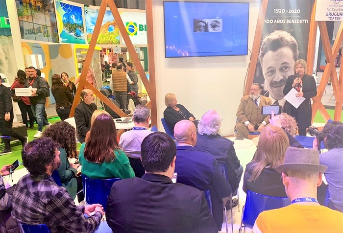 El viernes 24, el stand de Uruguay se colmó de público para la presentación del lanzamiento de la Mirada Benedetti, por parte de la directora de la división Turismo de Montevideo. En el marco del centenario del nacimiento del escritor, un circuito inteligente con 6 rutas distintas, permitirá descubrir Montevideo a través de la visión del escritor, un relato en el que se mezclará la obra, el autor y los sitios de la ciudad. Los viajeros podrán recorrer a pie los itinerarios turísticos de Ciudad Vieja, Centro, Capurro y Cordón, pero también mediante una aplicación disponible para los teléfonos celulares de cualquier compañía, y en la que aparecerá, de forma simultánea al lugar visitado una explicación histórica relacionada con obras de Benedetti. Durante la presentación, Jorge Hernandez, agregado cultural de México en España leyó el poema “Hagamos un trato” de Mario Benedetti.