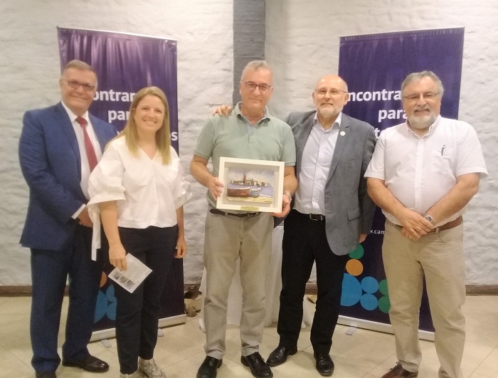 Los socios de la Cámara homenajearon a las autoridades salientes del MINTUR, la ministra de Turismo, Liliam Kechichian (en uso de licencia); el ministro (i) Benjamín Liberoff y el director nacional de Turismo, Carlos Fagetti. Cada uno recibió un cuadro de un artista nacional que representaba una localidad costera de Uruguay. La directora general Hyara Rodríguez (que está en el exterior) también recibirá el suyo.