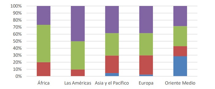 La sensación respecto a la recuperación de los viajes internacionales es más positiva en África y Oriente Medio donde la mayoría de los expertos pronostica la recuperación en 2020. Los expertos de las Américas son los menos optimistas y están menos dispuestos a creer en la recuperación en 2020, mientras que en Europa y Asia la perspectiva es mixta, siendo la mitad los expertos que esperan que la recuperación comience este año.