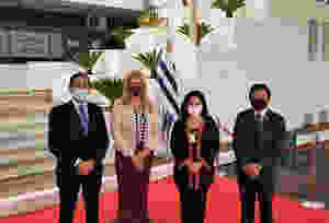 Sergio León, VP regional y gerente Amaszonas Uruguay; Ángeles Arriola, de Migraciones; ministra de Turismo de Paraguay, Sofía Montiel de Afara; Ing. Félix Kanazawa, el Presidente de la DINAC